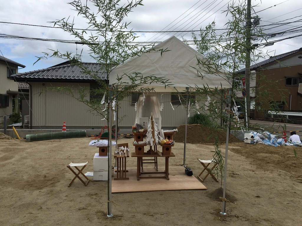 工事をする前に、土地の神様に対して工事の安全を祈願する儀式でして、